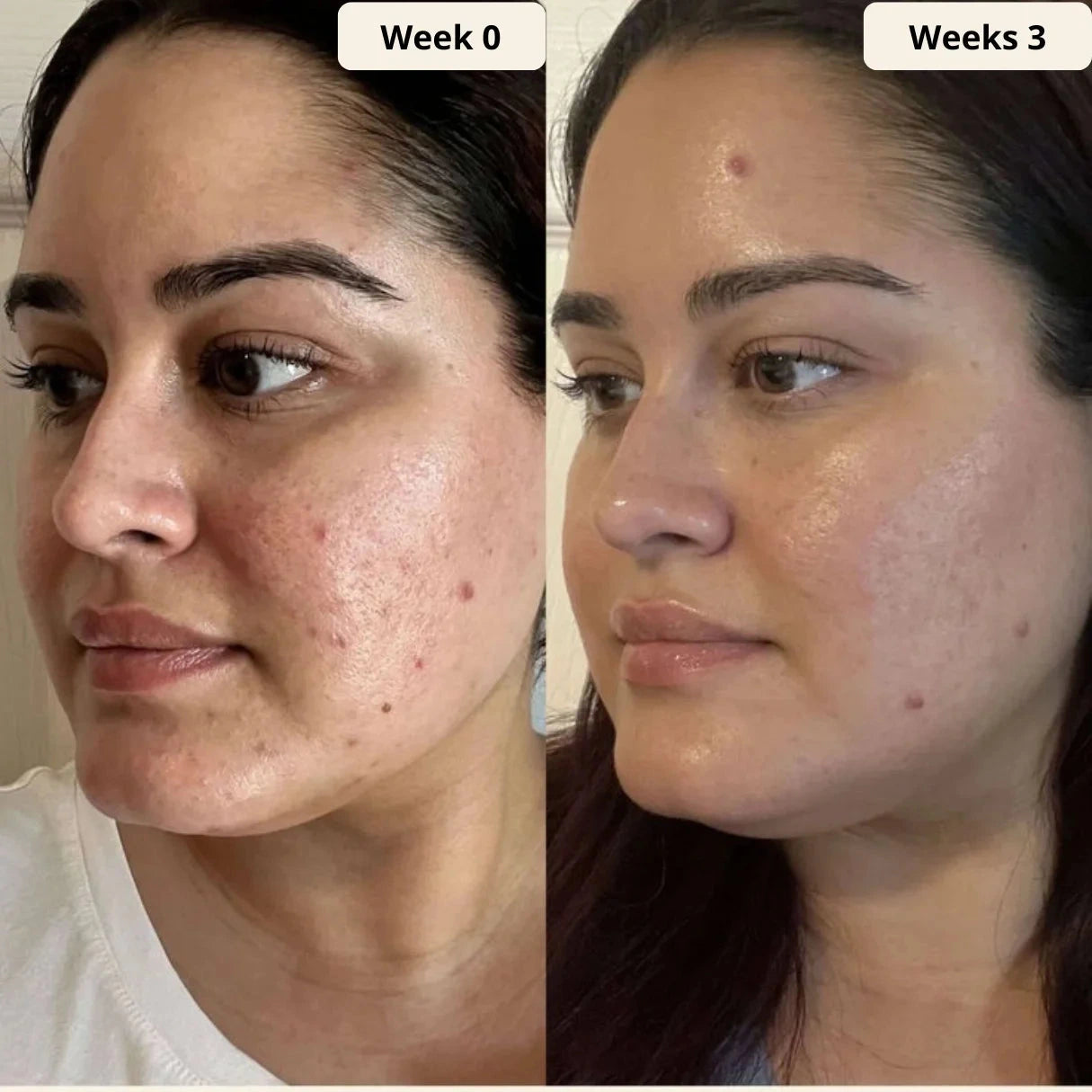 By the 3rd week, expect to see up to 70% improvement in imperfections, and you'll feel a real difference in the radiance of your skin.